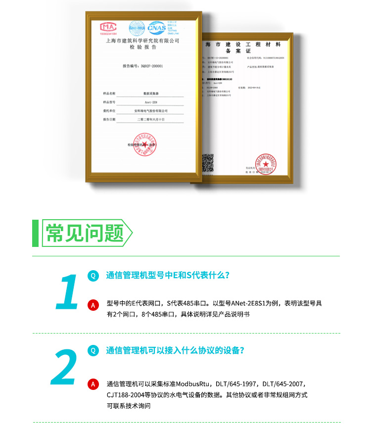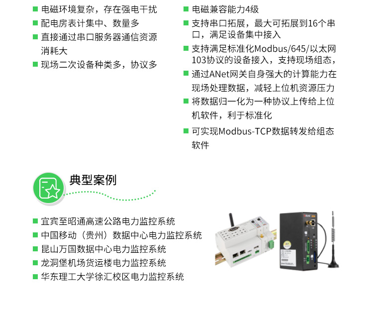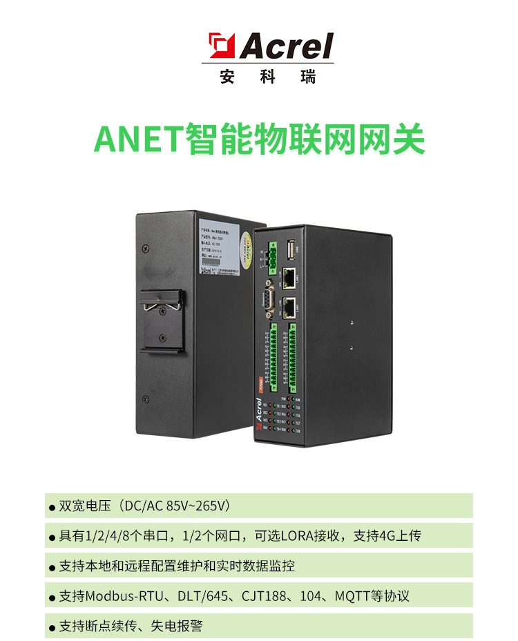 ANet-1E1S1/1E2S1是安科瑞电气股份有限公司自主研发的一款基于嵌入式Linux平台专门针对物联网应用设计的通用型智能通信管理机,可满足水、电、气、油、冷量、热量等各种形式的能源数据采集的需求。产品采用高性能ARM芯片,具有低功耗、实时数据采集集,实时数据监控、设备便捷管理等特点,广泛应用于建筑能耗系统,电力监控,电力需求侧,电网综能平台,泛在电力物联网等场景。