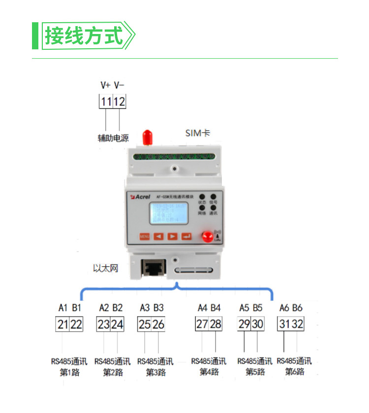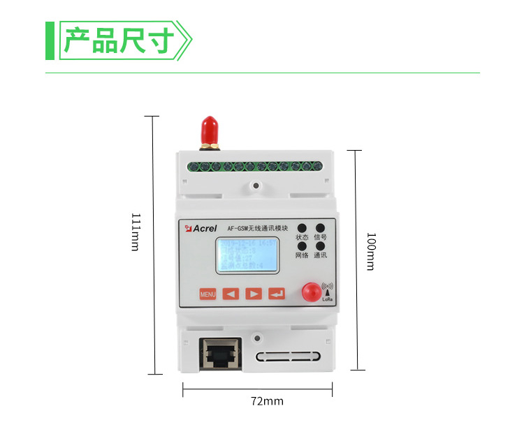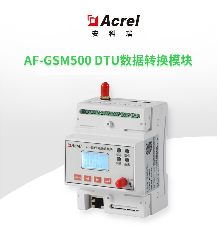 AF-GSM是安科瑞电气推出的新型的4G远程无线数据采集设备,采用嵌入式设计,内嵌TCP/IP协议栈,同时采用了功能强大的微处理芯片,配合内置看门***,性能可靠稳定。本产品提供标准RS485数据接口,可以方便的连接RTU、PLC、工控机等设备,仅需一次性完成初始化配置,就可以完成对MODBUS设备的数据采集,并且与安科瑞服务器进行通讯。