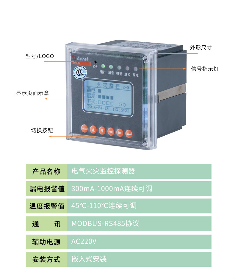产品采用先进的微控制器技术,集成度高,体积小巧,安装方便,集智能化,数字化于一身,是建筑电气火灾预防监控、系统绝缘老化预估等的理想选择。